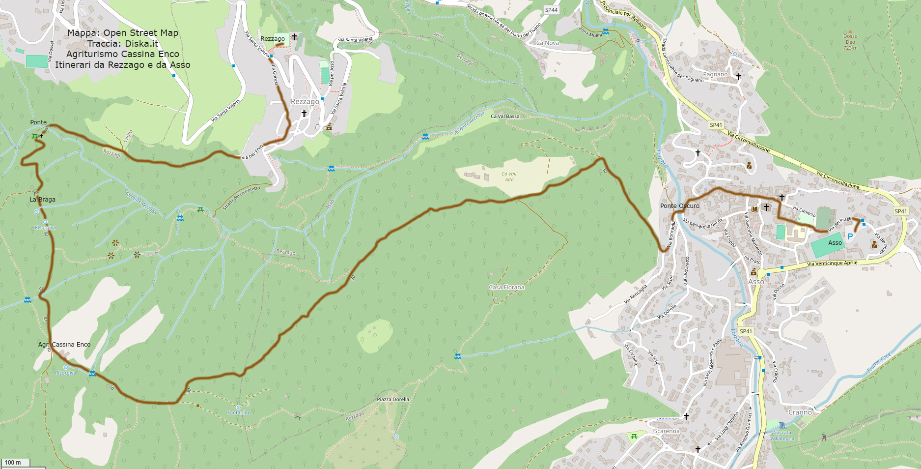 - diritto: Agriturismo Cassina Enco, Enco a ore 0.15, Monte Barzaghino a ore 1.10, Asso -da Enco- a ore 1.50;