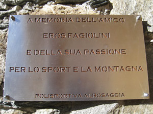 Una targa accanto alla porta d'ingresso ricorda Eros Fagiolini precipitato in un canalone sul Pizzo Meriggio.