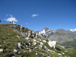 Camminiamo dapprima quasi in piano tra erba e alcune pietre, poi ricominciamo a salire, inizialmente con poca pendenza.