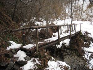 Al termine della discesa, tramite un guado o passando su di un ponticello, attraversiamo il torrente (m. 1145).