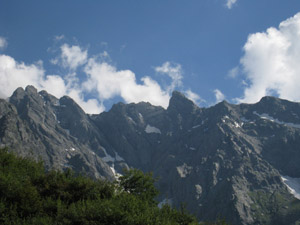 Passiamo su di una roccetta e arriviamo al guado del torrente Armisa che scende dalla sinistra (m. 1525). Un tronco incastrato tra le pietre agevola il