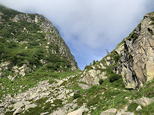 Presso un tornante sinistrorso attraversiamo il letto di un torrente che troviamo con pochissima acqua (m. 1790).