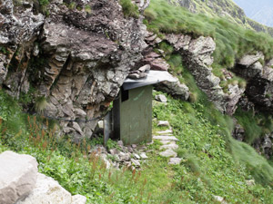Pochi metri sotto al rifugio, raggiungibile con un sentierino a zig-zag, c'è il gabinetto con una turca.