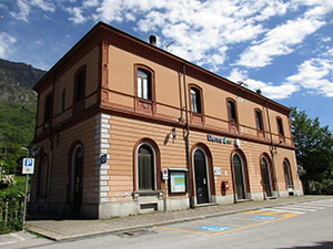 Dopo un centinaio di metri andiamo a sinistra in Via Panizza e raggiungiamo la stazione ferroviaria nel cui parcheggio lasciamo la macchina (m. 225).