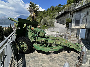 All'esterno di un tornante sinistrorso troviamo un vecchio cannone dipinto di verde (m. 260). Qui possiamo salire una scala che porta direttamente al